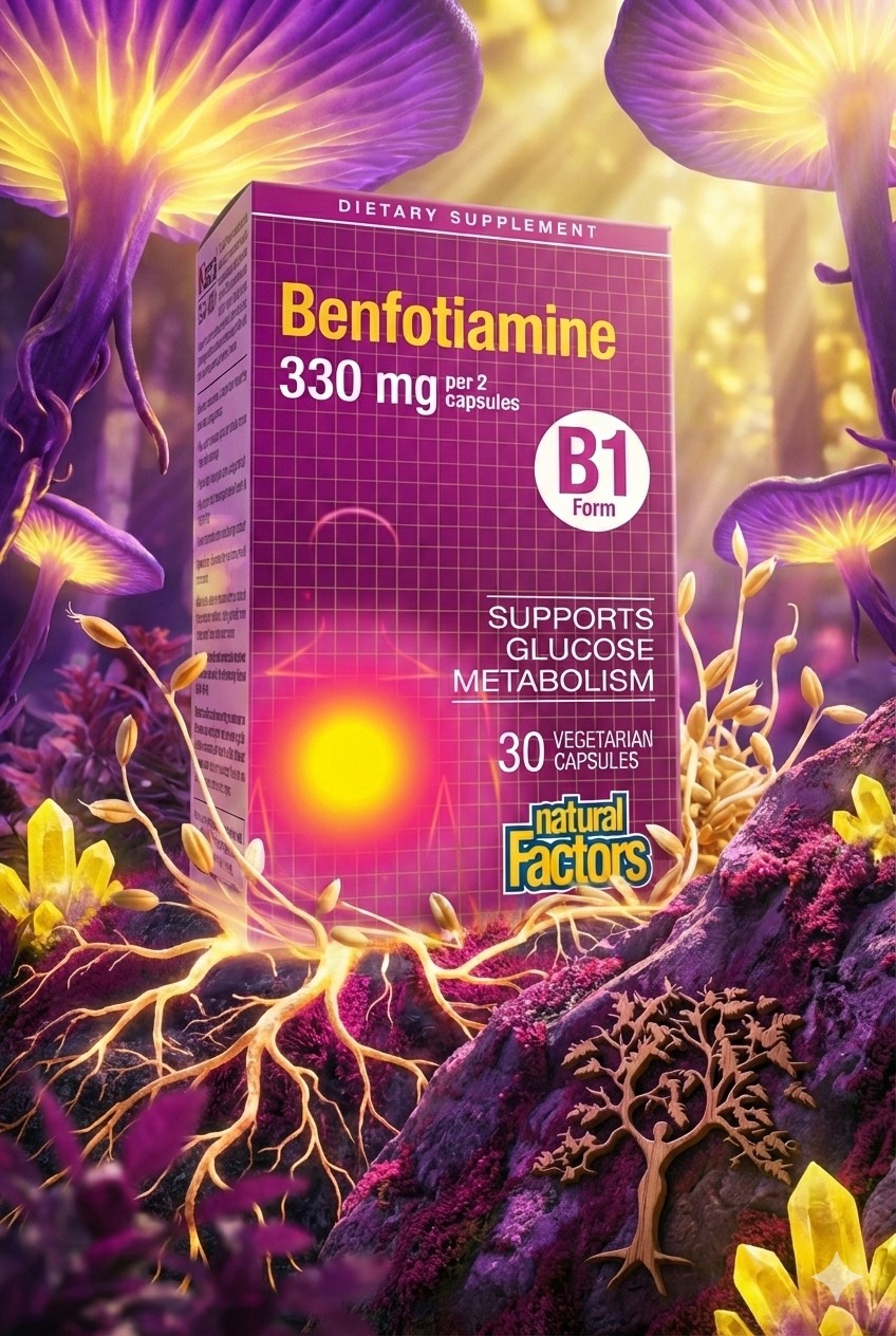 • يحفز Benfotiamine إنزيم Transketolase، وهو الإنزيم الأساسي للحفاظ على مسارات أيض الجلوكوز الطبيعية، مما يساعد على استخدام السكر بفاعلية كوقود.